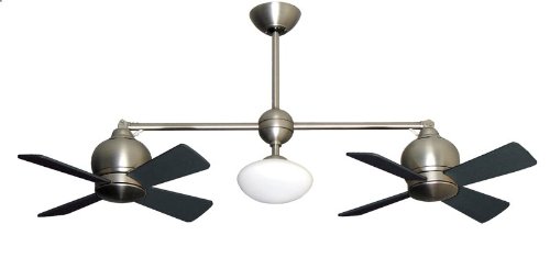 The clean lines of the Metropolitan model consist of two, 24" fans mounted on a single frame, totaling the complete width of the fan to be 57". The heads of each motor can be parallel to the floor, as well as seated at a 45-degree angle. The Satin Nickel motor finish includes Satin Steel blades that reverse to Matte Black.