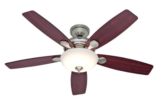 Hunter 25120 Eco-Air 52-Inch Single Light 5-Blade Ceiling Fan, Brushed Nickel with 5 Cherry/Black Blades and Frosted Glass Light Bowl